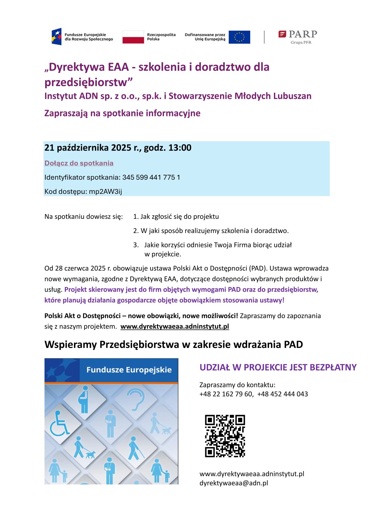 Dyrektywa EAA – BEZPŁATNE szkolenia z zakresu wdrażania i stosowania regulacji prawnych zgodnych z ustawą PAD (Polski Akt o Dostępności)